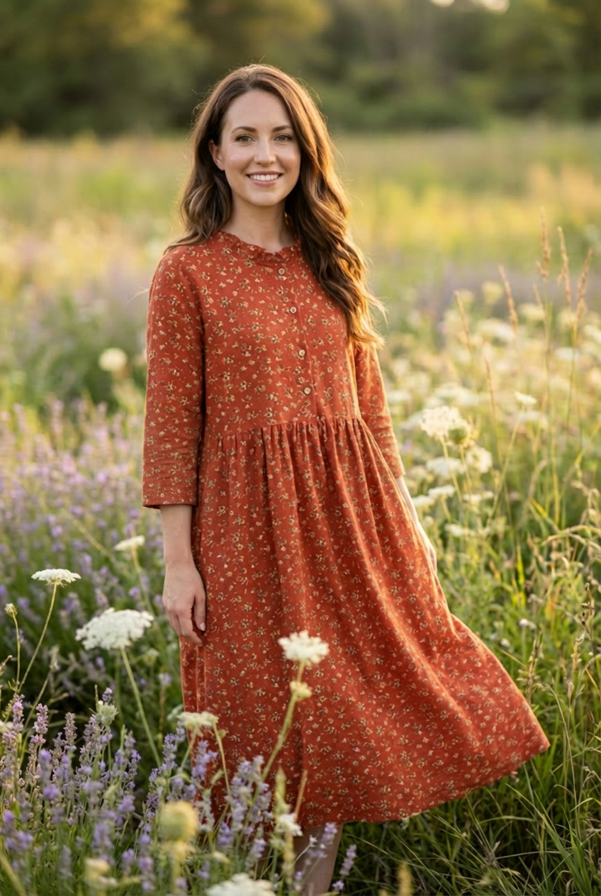 Our dresses are designed with a relaxed, forgiving fit. We recommend checking the size chart on each product page for exact measurements. If you’re between sizes or prefer a looser feel, we suggest sizing up.